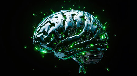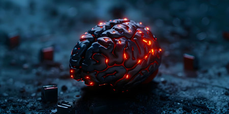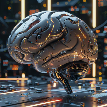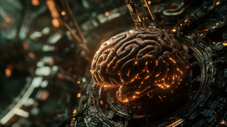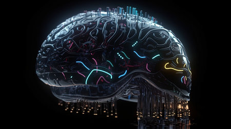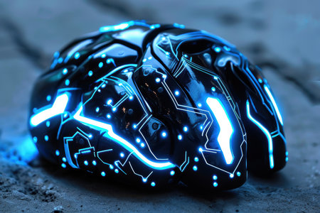 Futuristic cybernetic brain model with illuminated circuits depicting advanced AI technology and intelligence