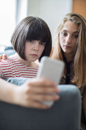 Teenage Girl With Friend Being Bullied By Text Message