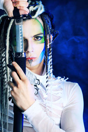 Shot of a stylish male warrior standing with his sword.