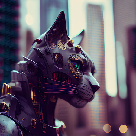 3D Illustration of a Futuristic Cat, Sci-Fi Animal