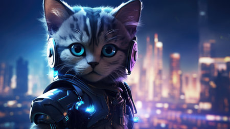 Futuristic Cyberpunk cat. Kitty pet home. Generate AI