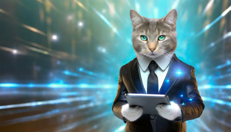 Holographic Cat Futuristic Feline Gliding Through Digital Space, Embracing Modern Technology