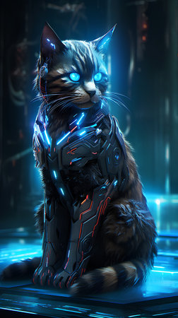 Feline Futurism The Cybernetic Cat with Glowing Eyes