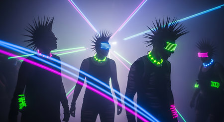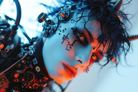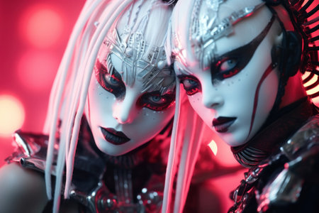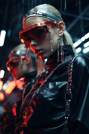 cybergoth nanopunks, girls futuristic shocking fashion, portrait, close