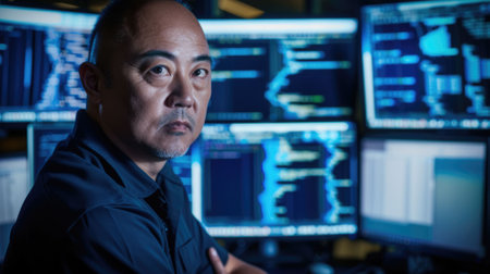 A man stands ready to defend against a digital threat, ensuring cybersecurity in todays interconnected world