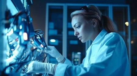 robotic arm handling dna sample in lab, created with generative ai