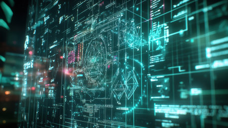 Detailed shot of a futuristic graphic with tech-inspired elements and a cool color palette, perfect for digital interfaces and technology-related content