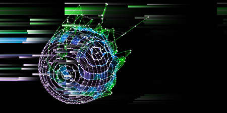 Abstract background with grid analyze grid and lens effect. Analytics algorithms data. Quantum cryptography concept. Banner for business, science and technology. Big data.