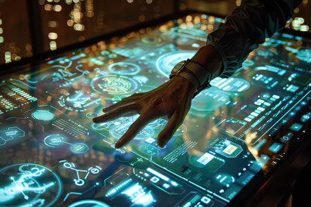 The art of computer prototyping concept: human hand on keyboard of mobile computer programming complex shape production