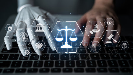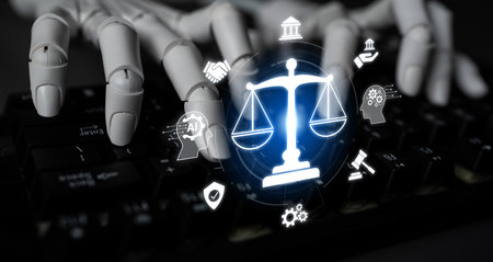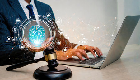 AI in global online legal services and cyber law. Digital platform using AI for legal consultation, justice, and regulatory compliance. Motif