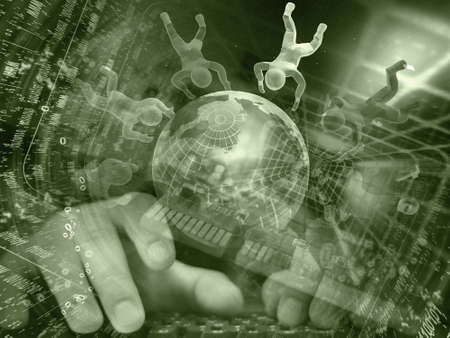 Business background in sepia with electronic device, man and digits.