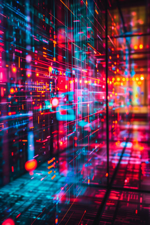 Futuristic Neon Visualization of Machine Learning AI Networks