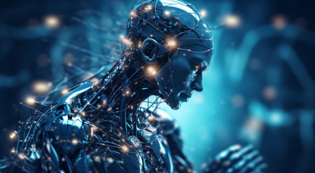 The photo depicts the concept of artificial intelligence and machine learning, highlighting the role of technology in shaping the future. Generative AI