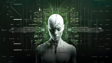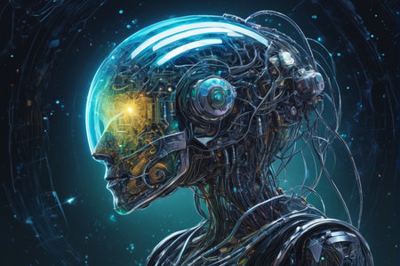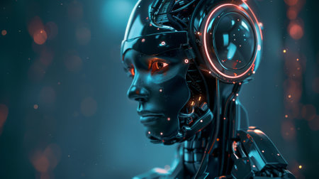 Artistic 3D illustration of a cyborg with artificial intelligence