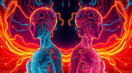 3D rendering of artificial intelligence in cyborgs cyborgs