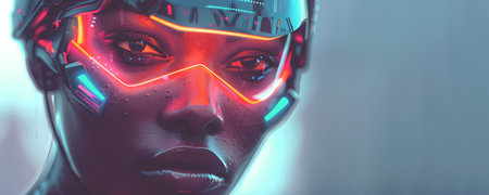 Cyberpunk style portrait of beautiful young woman in futuristic costume.