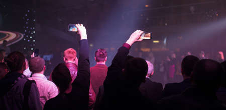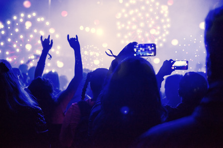 CLUJ-NAPOCA, ROMANIA - AUGUST 6, 2016: People taking photos with smart phones at a Dj Twoloud live concert at Untold festival