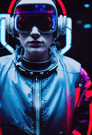 metaverse vr simulation gaming cyberpunk style, digital gamer streaming