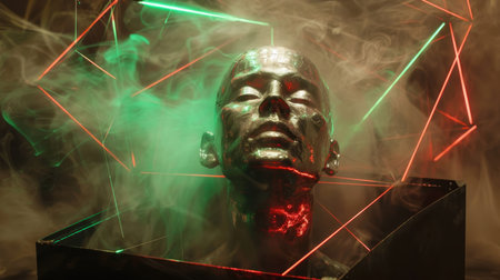 3D Illustration of a Artificial Intelligence Cyborg or a persons consciousness transfered to a digital existence