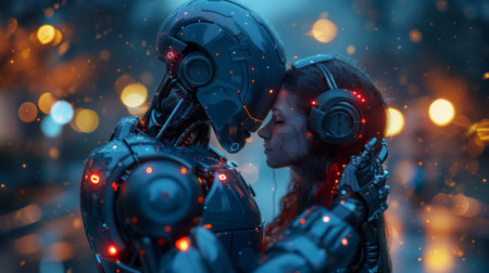 Robot android with human feelings. concept of love between human and robot, relationship and loneliness.