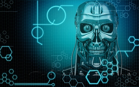 Human cyborg robot for futuristic artificial intelligence imagery