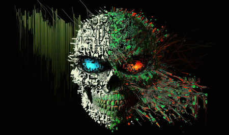 Human skull. Computer code program. Beautiful colorful illustration. style. Generative AI