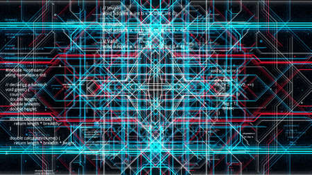 3d software base with codes. Animation. Projection of software with database in 3d cells. Futuristic animation with program codes and codes