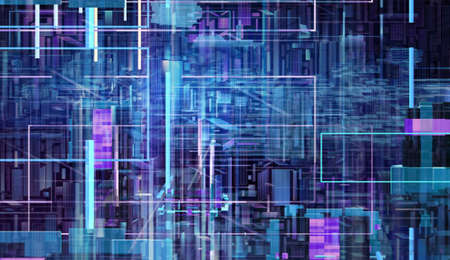 Abstract 3d rendering of blue and pink circuit background. Computer digital drawing.