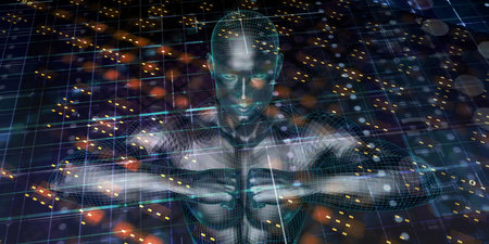 Cyborg and net. Big data and machine learning modern design.3d illustration