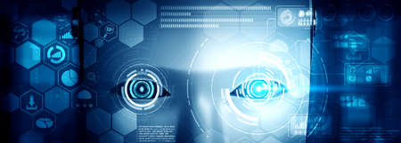both the UI and virtual GUI. Science fiction, futuristic cyberpunk technologies, holograms and gateways, and a dazzling HUD projector.