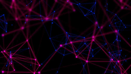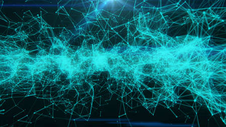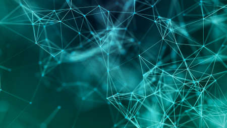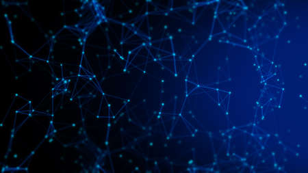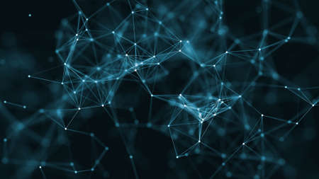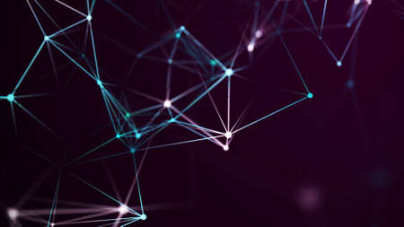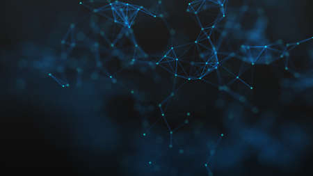 Network connection structure. Abstract background with moving dots and lines. Futuristic illustration. Digital technology design. 3d rendering.