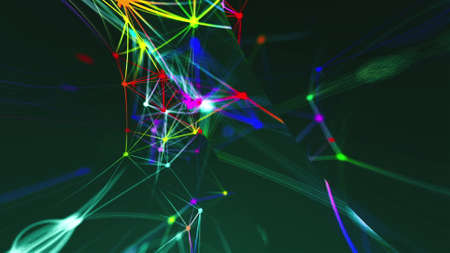The neon bright sphere shape object that has been connected with the link of the bright line that portray the connection between each sphere to something similar like a network or connection. AIGX03.