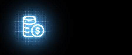 The concept of money in the form of coins in the form of a hologram with copy space.
