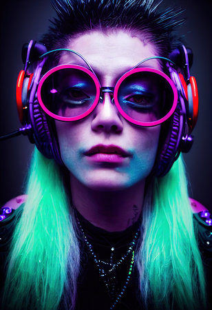 Cyberpunk style portrait of beautiful young woman in futuristic costume.