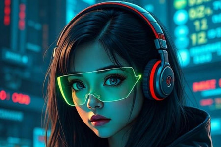 Futuristic style. Cyberpunk woman.