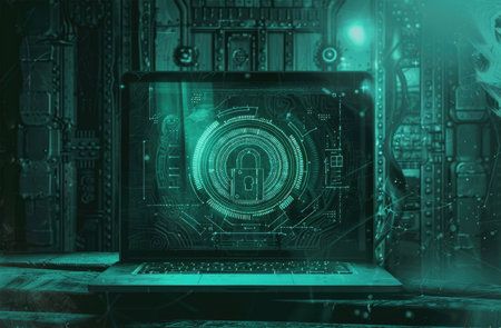 Digital Composite Image Of user Using Laptop With, cyber security concept, data protection and secured internet access, cybersecurity