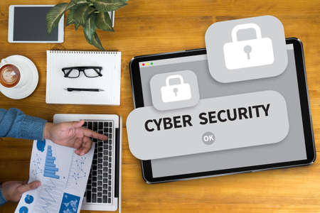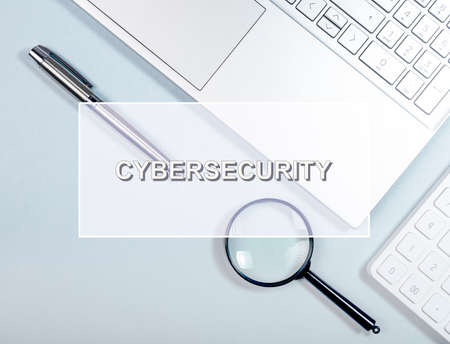Cybersecurity word. Cyber security concept, inscription on photo.