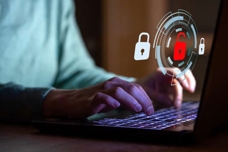cybersecurity concept, user privacy security and encryption, secure internet access Future technology and cybernetics, screen padlock.
