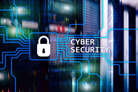 Cyber security, information privacy, data protection concept on modern server room background. Internet and digital technology concept.