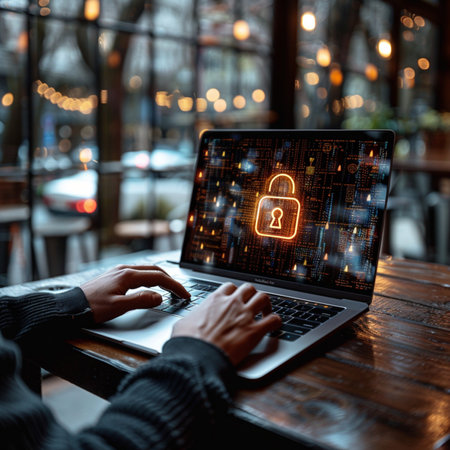 Cyber security importance in modern office. laptop, padlock, and data protection