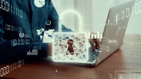 business hand working with Data protection Cyber Security Privacy Business Internet Technology Ui.