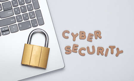 Cyber security importance. laptop and padlock in modern office - data protection and cyber attacks