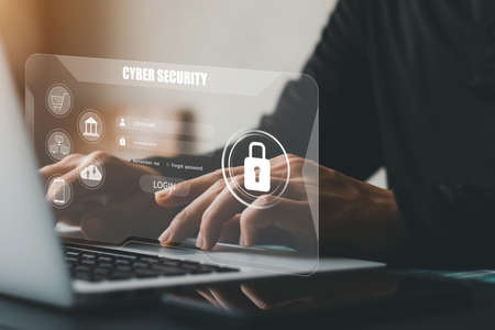 Cyber ​​Security. businessman using computer Network Login, Internet Security, Prevent Unauthorized Access, Personal Information, Authentication, Top Secret, Use the Internet Safely.