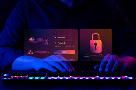 Concept of cyber security, user type login, and password, keeping user personal data safe, encryption, secure internet access, cyber security.