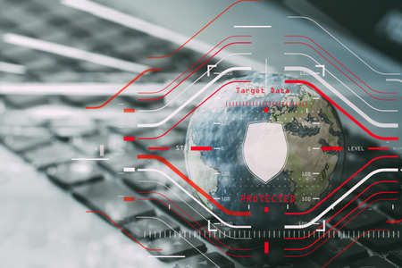 General Data Protection Regulation (GDPR) and Security concept.Computer Halogram target protection locked with success on business finance working and technology.