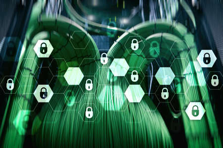 Concept of cybersecurity, cybersecurity and login and password, information security and encryption, secure Internet access, future technology and cybernetics.