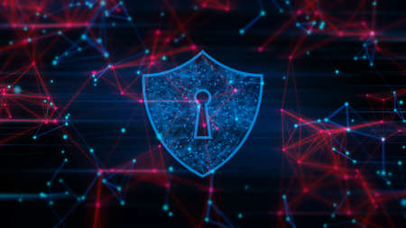 Cyber security, network protection and digital data with shield symbol digital concept. Network, cyber technology and computer background abstract 3d illustration.