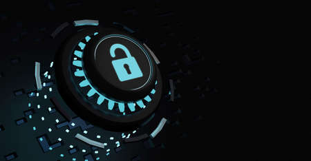Visionary cyber security encryption technology to protect data privacy . 3D rendering computer graphic .