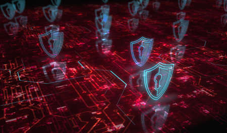 Data Security system Shield Protection Verification concept with computer halogram scanning on data of business and all technology