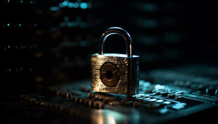 Secure computer network encryption with selective focus on padlock lock generated by artificial intelligence
